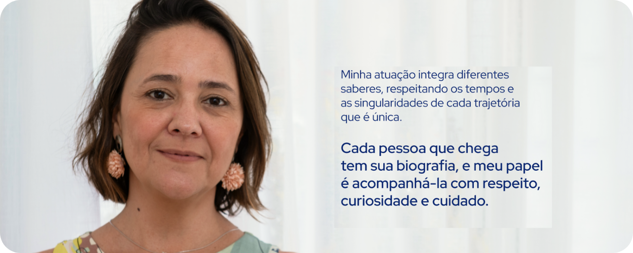 Minha atuação integra diferentes saberes, respeitando os tempos e as singularidades de cada trajetória que é única.